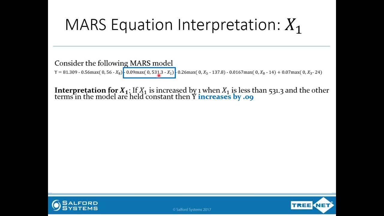 The MARS® modeling engine is ideal for users who prefer results in a form similar to traditional regression while capturing essential nonlinearities and interactions.