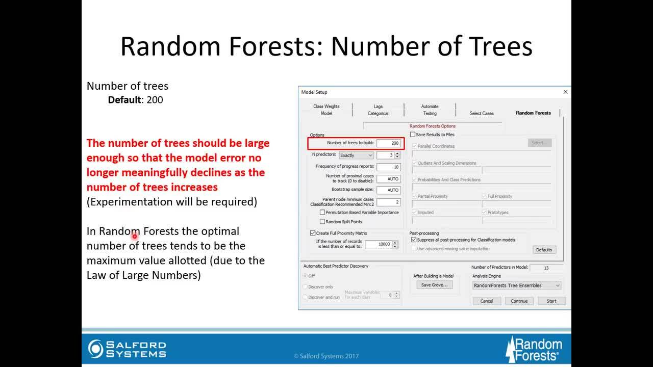 Random Forests® is a modeling engine that leverages the power of multiple alternative analyses, randomization strategies, and ensemble learning.