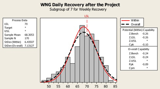 Mosaic는 2004년에 Cargill과 International Minerals Corporation의 합병을 통해 설립된 후로 Lean Six Sigma에 투자했습니다. Mosaic의 품질 이니셔티브는 2008년에만 45개가 넘는 팀과 500명 이상의 직원이 동원되었고 약 2,500만 달러에 육박하는 금액이 투입되었습니다. 그러나 Wingate Mine 팀이 프로젝트를 시작하던 당시, 사람들의 기대는 매우 낮았습니다. Gliksman은 “관리자들은 회수율이 2%나 3% 정도 향상되길 기대했어요. 저희한테 회수율이 70%로 지속된다면 그건 기적이라고 말했죠”라며 회상했습니다.