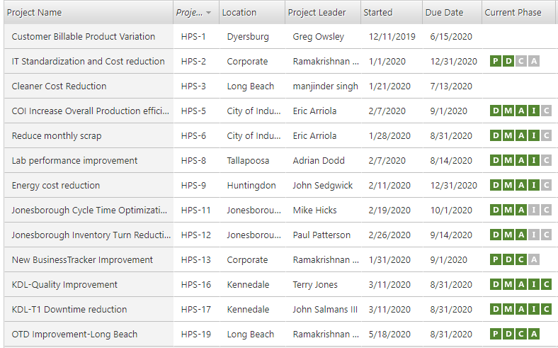 项目管理受训人员利用 Companion by Minitab* 工具和表单以及 Minitab Statistical Software 的分析来完成其项目。然后,他们在实时控制台中跟踪所有项目的进度和绩效。