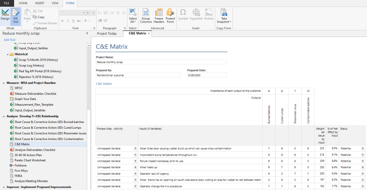 受训人员可利用 Companion* 和 Minitab 中的各种工具定义问题,验证其测量系统,合并数据分析并确定根本原因,改进过程并最终控制和维持实施的更改。借助模板,Sukumar 设定了每个阶段的期望,并提升在全球 HEXPOL 站点间报告结果的方式的一致性。这不仅有助于增强培训效果,还可生成供高级管理层参考的简洁报告和摘要。